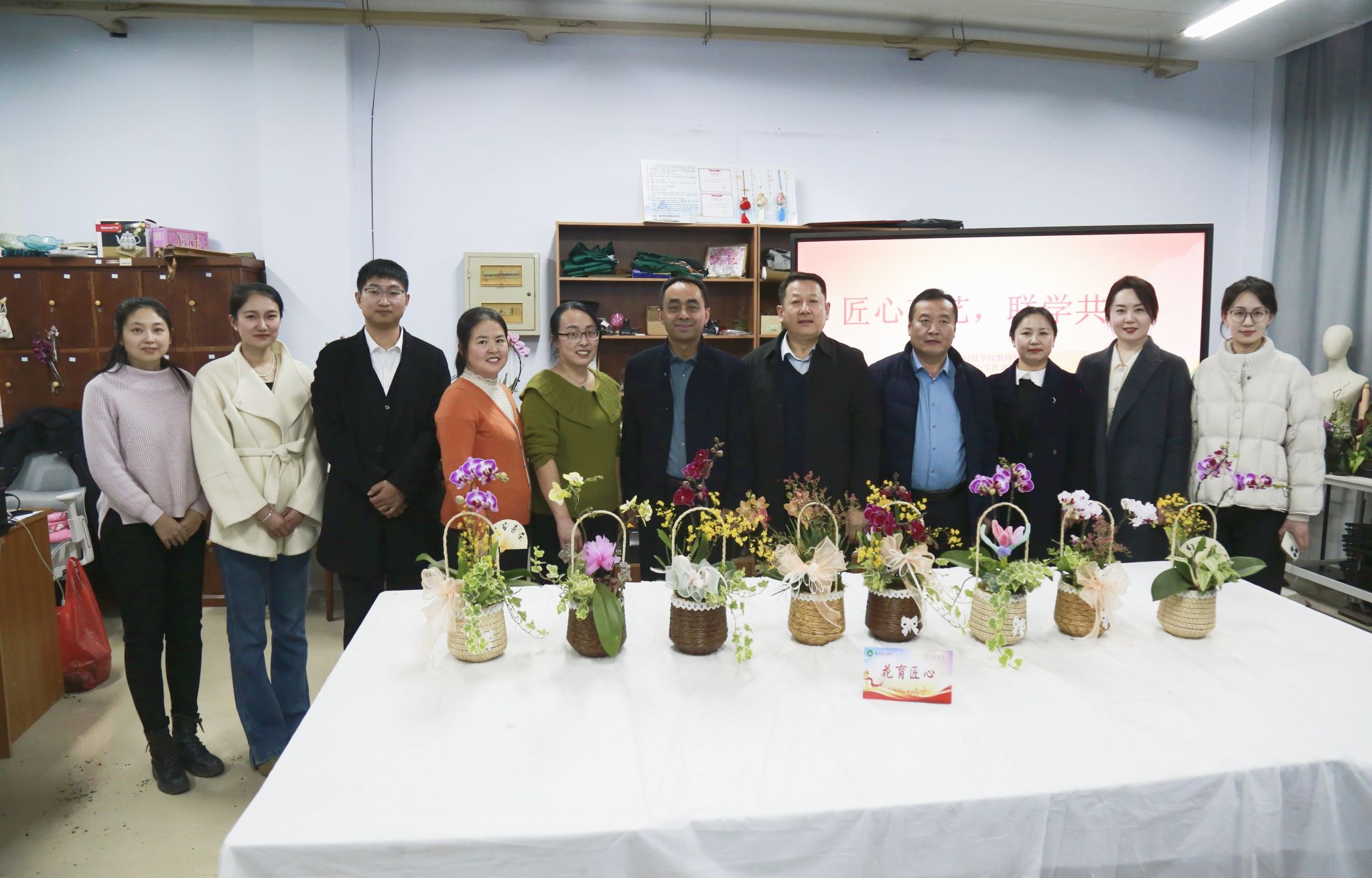 座谈结束后,双方共同参与了由教师党支部“花育匠心”党小组策划的“匠心花艺联学共建”活动,党员教师结合农林专业特色,从花材选育、色彩搭配、造型设计等方面进行细致讲解,双方党员动手实践花艺创作。