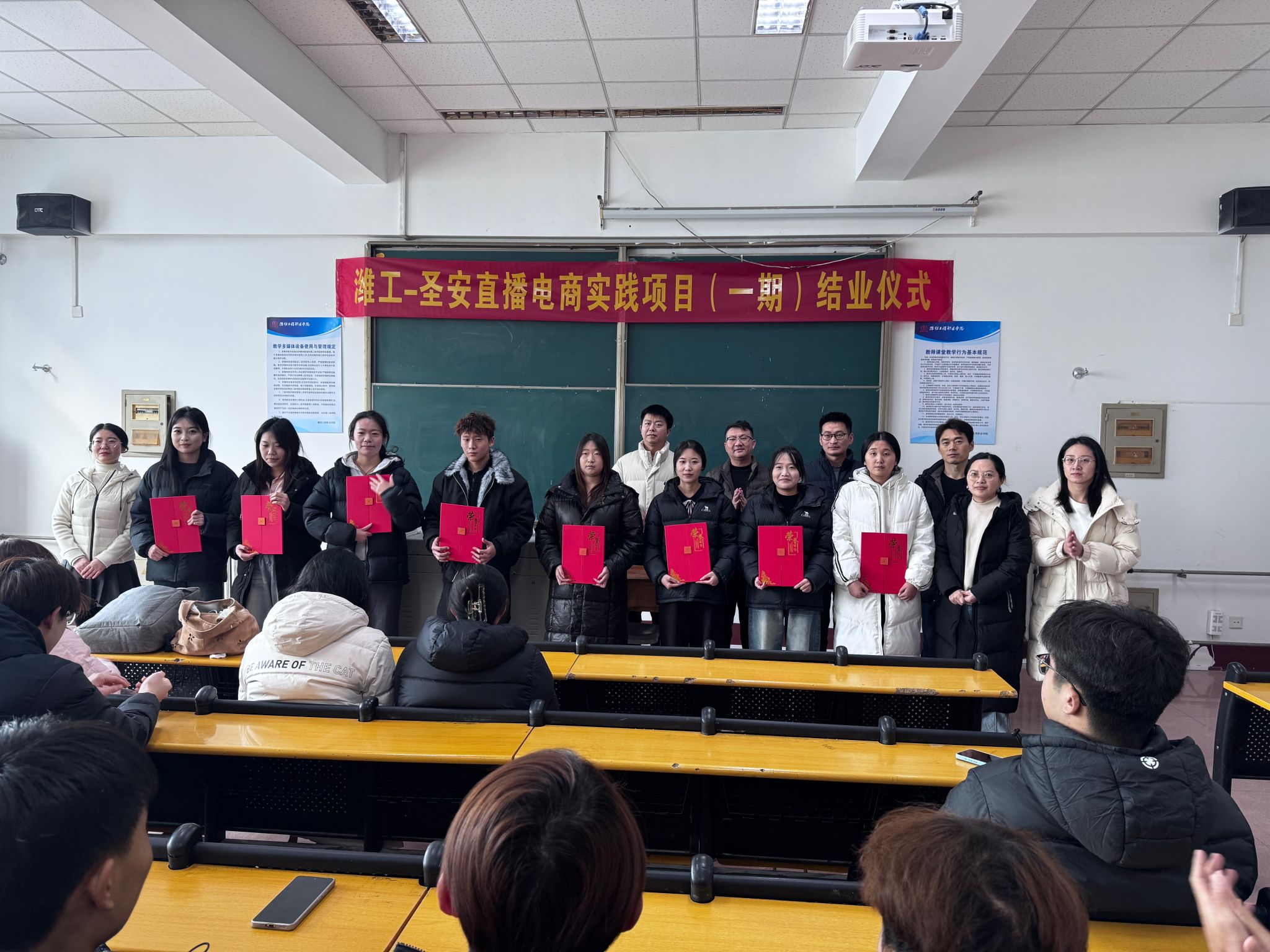 1月19日,经济管理学院与山东圣安电子商务有限公司联合举办直播电商实践项目(第一期)结业仪式。双方相关负责同志以及经济管理学院2024级市场营销专业实践学生参加活动。