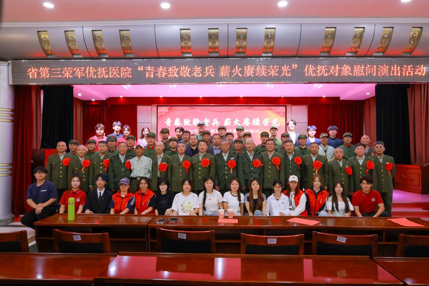 4月29日,凤凰艺术学院与威海乳山退役老兵合唱团在省第三荣军优抚医院开展“红色精神代代传”主题互动活动。