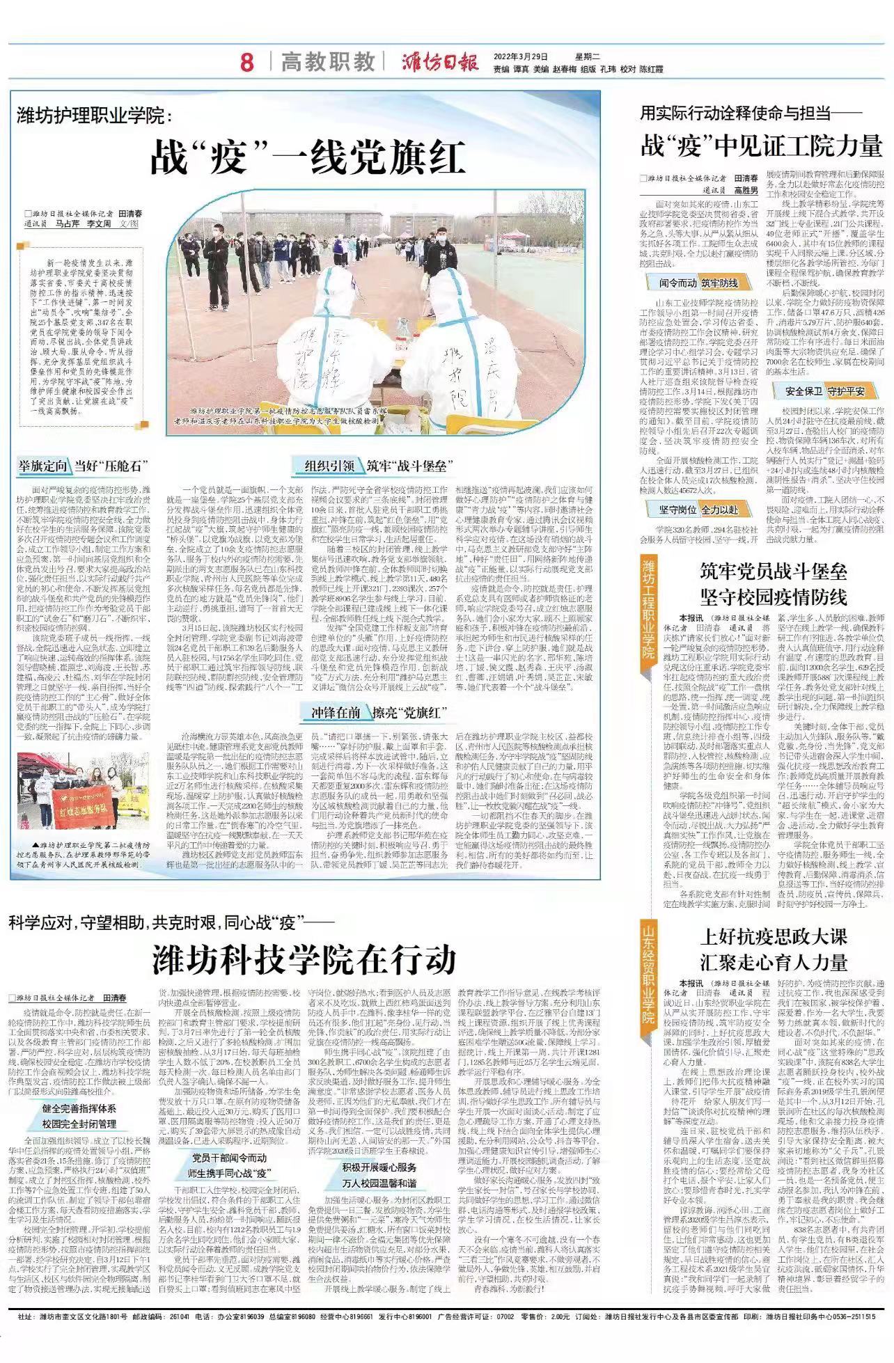 本报讯 (潍坊日报社全媒体记者 田清春 通讯员 蒋庆栋)“请家长们放心!”面对新一轮严峻复杂的疫情防控形势,潍坊工程职业学院用实际行动兑现这份庄重承诺。学院党委牢牢扛起疫情防控的重大政治责任,按照全院战“疫”工作一盘棋的思路,统一指挥、统一调度、统一处置,第一时间激活应急响应机制,疫情防控指挥中心、疫情防控领导小组、疫情防控工作专班、信息统计排查小组等,四级协同联动,及时部署落实重点人群防控、入校管控、核酸检测、应急演练等各项防控措施,切实维护好师生的生命安全和身体健康。