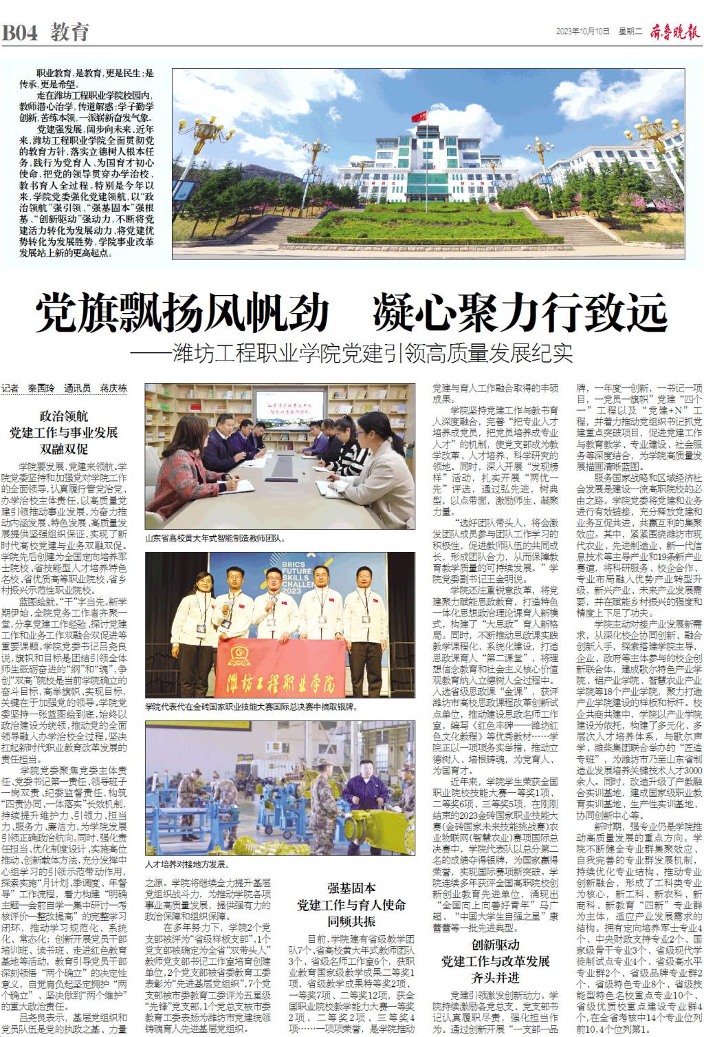 上一篇:潍坊日报--党旗飘扬风帆劲 凝心聚力行致远——潍坊工程职业学院党建引领高质量发展纪实